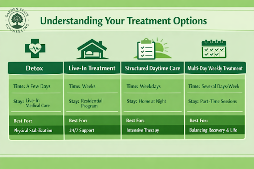 This level offers multiple hours of therapy and support during the day, but you return home at night. It’s often helpful if you need strong structure but also have responsibilities you can’t fully step away from.